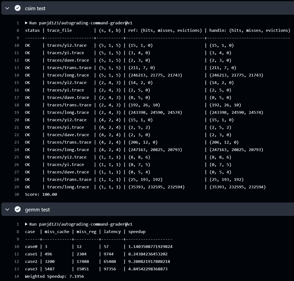 | csim 分数 | case1 speedup | case2 speedup | case3 speedup | weighted speedup |